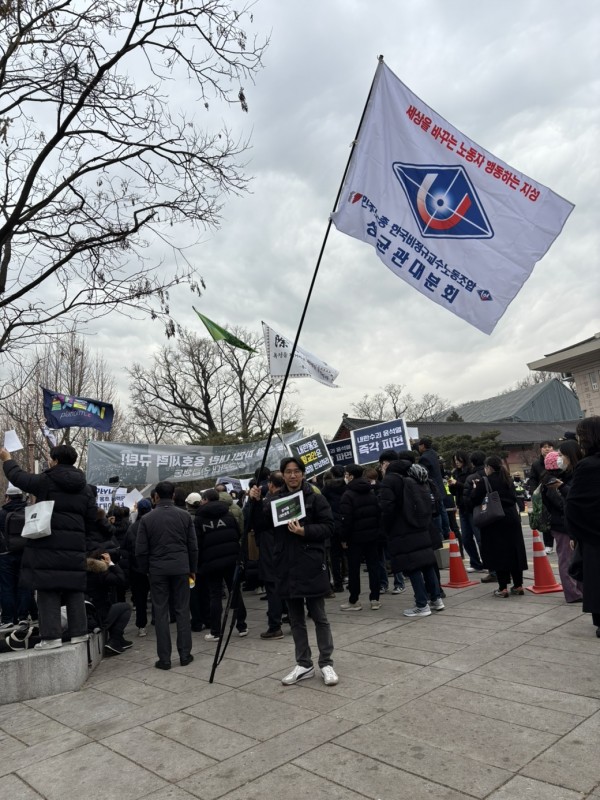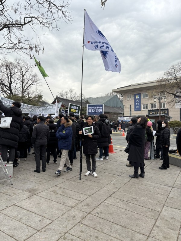 지난 2월 28일 성균관대 앞에 모인 내란 옹호 세력을 규탄하기 위한 집회에 이성준 분회장이 참석하였습니다.